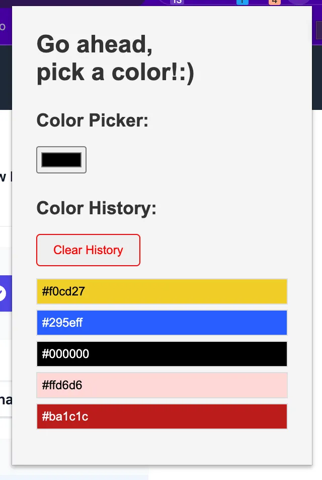 This way, we set up this simple Chrome extension which features a color picker, color picker history and the possibility to clear the history in about 30 minutes - As someone who had never touched a Chrome extension before, ever.
