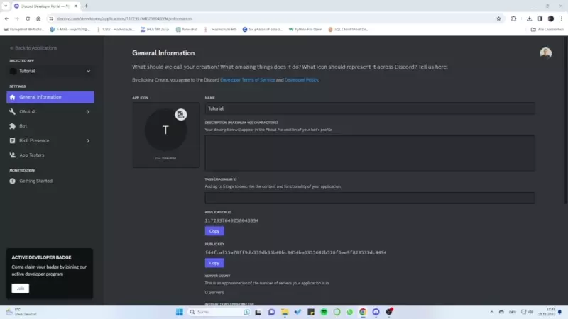 Congratulations, you now have your first Discord application. Remember, never share any credentials for an application with others to prevent misuse of your bot.