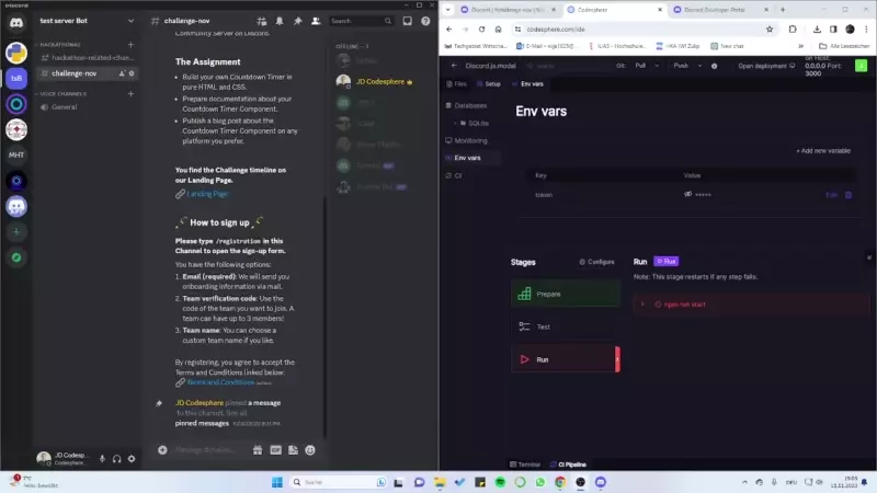With everything set up, restart the run stage, and the bot will come online, allowing you to use the /signup command on your server.