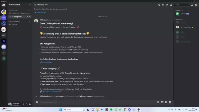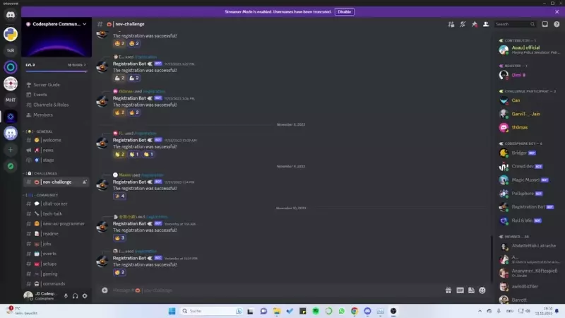 Our 'Registration Bot' from our own community server serves as the basis for the bot featured in this tutorial. This bot manage the sign-up process for our monthly challenges.