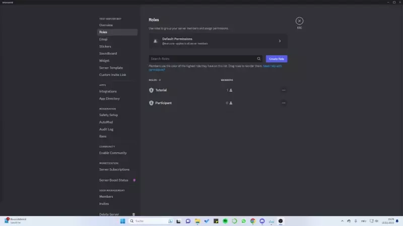 The Bots role must be above the new role (in this picture the Participant role). Save the changes again, and Discord sets up the new role.