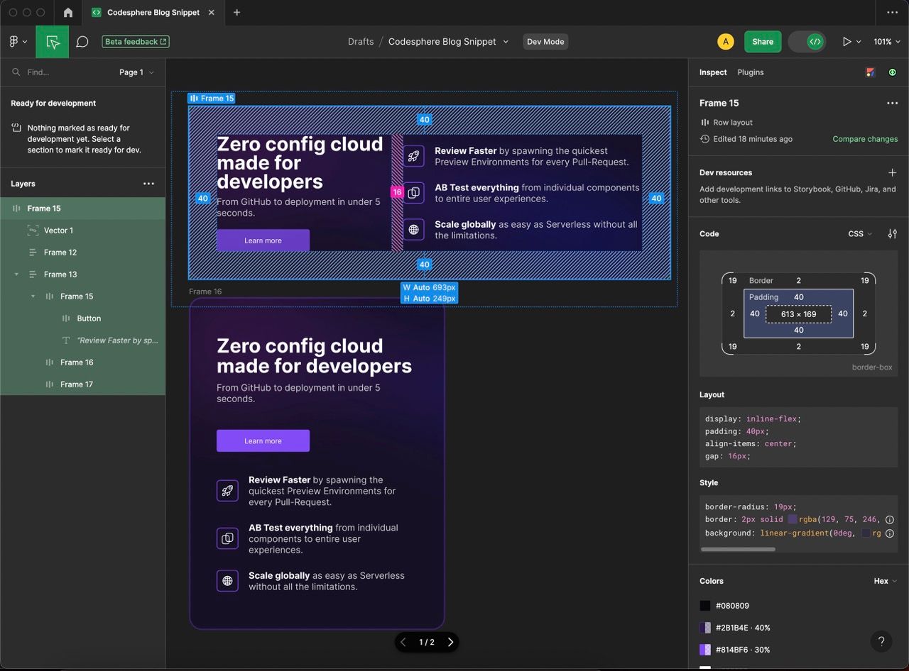 We have been wanting to create reusable marketing snippets for our Ghost.io blog for a while and decided to finally make it happen, using the Figma Dev Mode.
