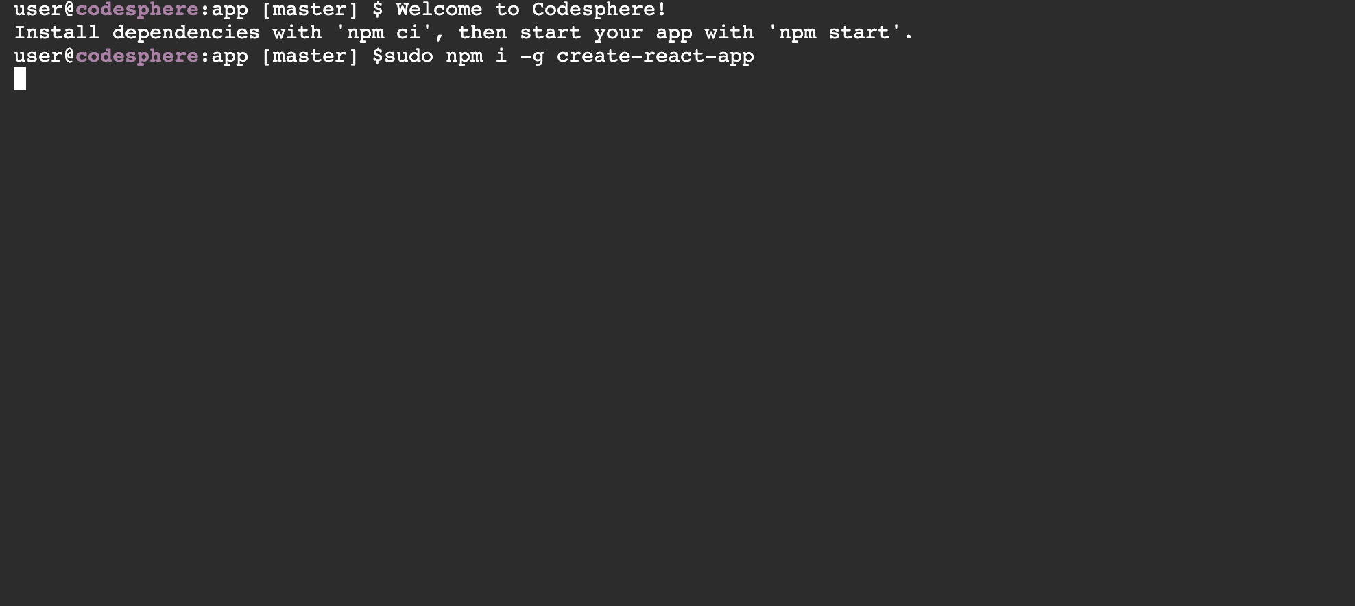command: sudo npm i -g create-react-app