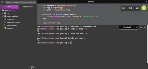 We are going to create two files: server.js to run our express server, and an index.html file for our webpage.